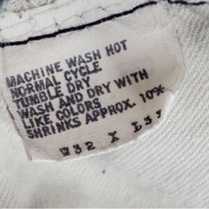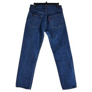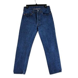 This pair of Levi's 501 jeans is a vintage gem for men who appreciate timeless style. Made in the USA in the 80s, these blue jeans feature a buttonfly closure and tapered leg cut for a modern look. The size is regular 32x33 and the color is classic blue, perfect for any occasion. The brand, Levi's, is known for their quality and durability, ensuring that these jeans will last for years to come. The model, Levi's 501, is a classic that will never go out of style. Get your hands on this authentic pair of jeans today and add a touch of USA-made style to your wardrobe.