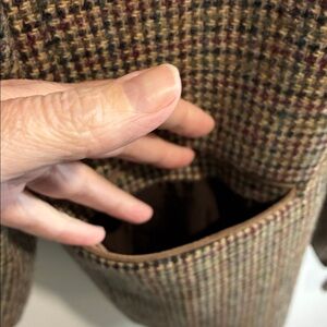 Chickenpox pattern. Made in USA. Feels like a Wool blend, no material tag. No size tag, see measurements