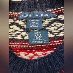 Vintage Ralph Lauren Holiday Christmas Fair Isle Red & Navy Olympics Sweater