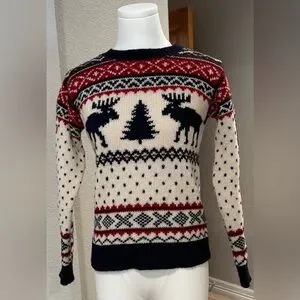 • Fair isle design with reindeer & tree