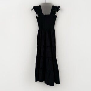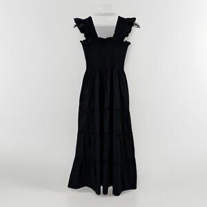 Quince Women's Organic Cotton Smocked Midi Dress sz S Black Sleeveless PO