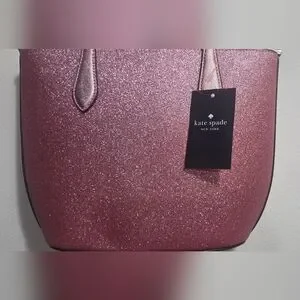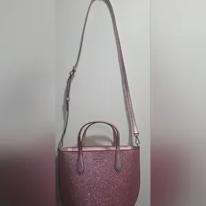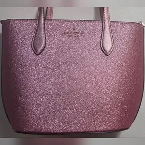 Kate Spade Sparkling Pink Glitter Tote Bag With Detachabble Strap For Crossbody