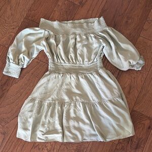 Gianni Bini Charming Off-Shoulder Dress in Light Green Cream