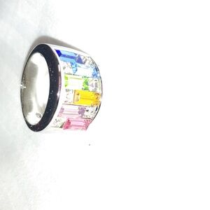 This stunning silver ring features a dazzling array of multicolor gemstones, perfect for adding a vibrant touch to any ensemble.