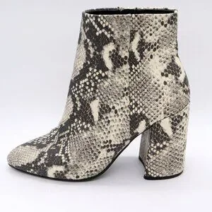 Steve Madden Snakeskin Print Ankle Booties Block Heel Side Zip Womens Sz 7.5
