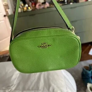 Sleek and stylish green leather bag by Coach. Ideal for cosmetics and essentials. Y2K coach bag! Authentic!! I bought it to clip it onto my my bigger bags. You can clip it on like a bag, Charm I just bought some little O-ring loops off Amazon to clip it. Super easy and so cute if you click this on your bigger bag or just use it as your bag for the night out it’s really really good condition.
