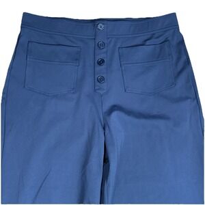 Halara Wide Leg Pants size L Pull on Faux Button Front Navy NWT