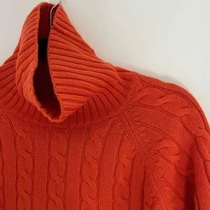 Cozy turtleneck with intricate cable knit. Perfect for warmth and style.