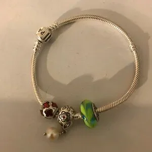 Authentic Pandora Snake Bracelet w/ 3 Charms