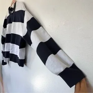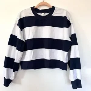 Lululemon Perfectly Oversized Cropped Crew Pack Stripe True Navy White Sz 6