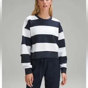 Lululemon Perfectly Oversized Cropped Crew Pack Stripe True Navy White