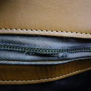 Flaws (please give some grace for a 1970s bag): bottom edges has black scuffs, on each side (seam area) there is tearing in the leather, some cracking round top, stitching is missing in leather areas, missing attached purse but silver-tone leash is still on, missing full zipper pull inside (zipper works), seam under zipper ripped, some light staining on the bottom inside of the bag, signs of use on straps, and slight cracking on top. I think I have everything listed.