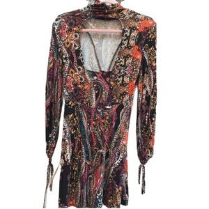 Free People “All Dolled Up” Paisley Mini Dress Open Back XS
