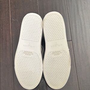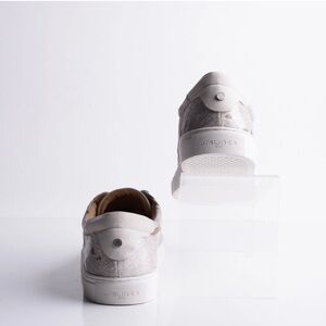 Chic J/SLIDES sneakers sz 9 with a stylish blend of white and silver real calf hide cow print tennis shoes. Perfect for casual outings.