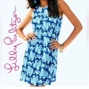 🐘 Lilly Pulitzer Kristen Dress in "Deep Indigo Joy Ride" print. Elephants XL