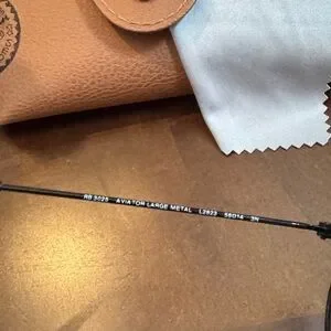 Classic Ray-Ban aviators with a black frame. Includes a tan case. Authentic. Unisex. Comes with the case.