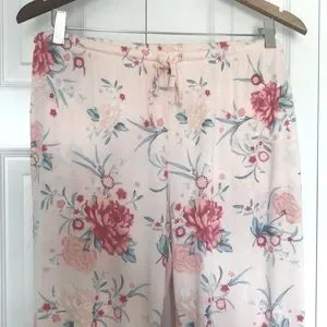 Excellent condition Flora Nikrooze pink floral pajama pants. Drawstring waist, side slit pockets, super soft fabric. Measures 18” waist flat, 11” rise, 27” inseam. No pilling or flaws. Size L