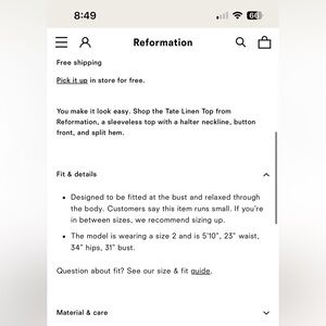 NWT Reformation BLACK TATE HALTER TOP Size 4