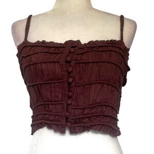 Urban Outfitters Ruch Button Crop Tank Womens Top Sz Med Chocolate Boho Layer