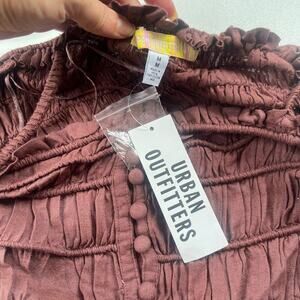 Urban Outfitters Chocolate Brown Ruched Button Crop Top Boho Fall Aesthetic M NWT