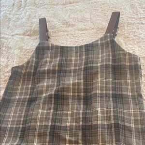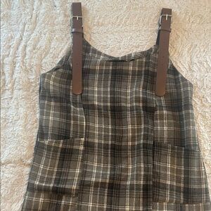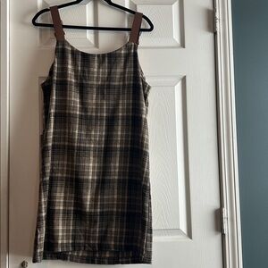 Plaid Sleeveless Dress with Brown Straps