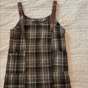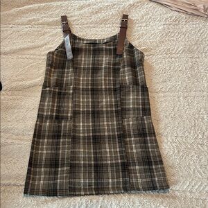 Stylish plaid dress featuring adjustable brown straps. Perfect for casual outings.