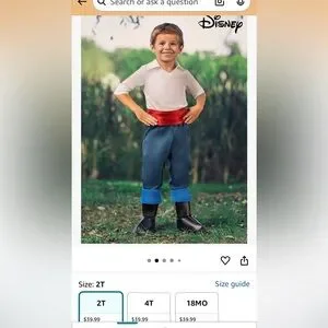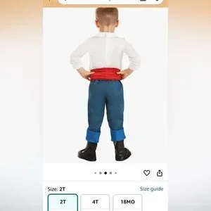 Transform your child into Prince Eric with this charming costume. Featuring a white shirt, blue pants, and a red belt, it's perfect for Halloween or dress-up play. Let their imagination set sail!