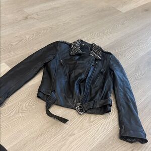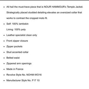Nour Hammour Temple Leather Studded Jacket. Size 36 (equates to size 2-4).