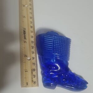 Charming blue glass boot figurine. Perfect for decor or collection.
