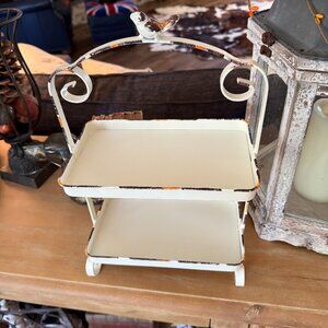NWOT Shabby Chic Tiered Tray with Bird Finial