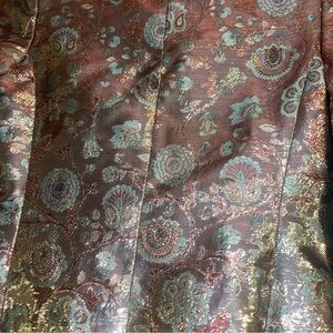 Stylish metallic blazer with floral pattern. Perfect for adding flair to any outfit.