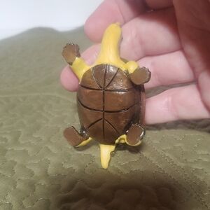 Enhance your space with this charming decorative turtle figurine. Featuring a rich brown shell and yellow accents, it's perfect for reptile lovers. and for jewelry. smoke free home.