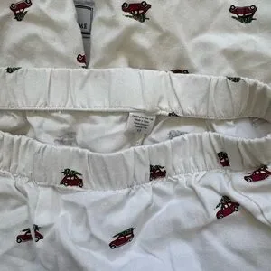 Cozy brushed cotton flannel kids pajamas featuring a playful pattern and red trim. Size 10. Worn for one holiday. Great for boy or girl.