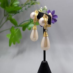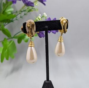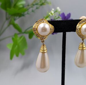 Genuine Crystal And Pearl Vintage Gold Plated Clip On Earrings