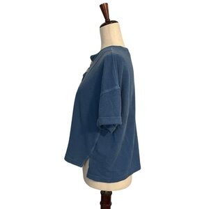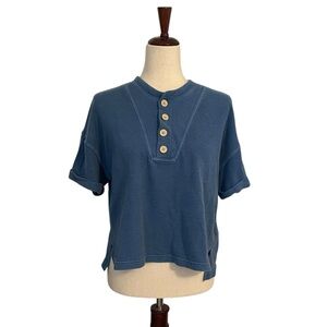 Universal Thread Women’s Short Sleeve French Terry Henley Top, Blue Size Small