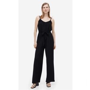 NWT H&M Woven Gauze V-Neck Sleeveless Belted Wide Leg Jumpsuit Black 4XL