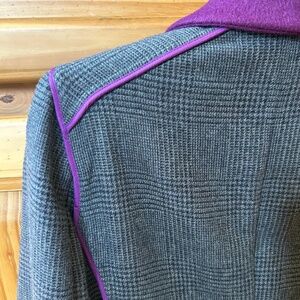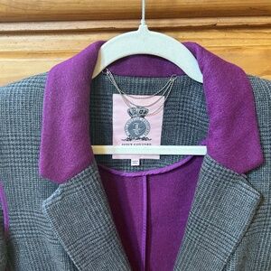 Juicy Couture Blazer Wool Blend Gray Plaid Purple Women's Jacket Size Medium