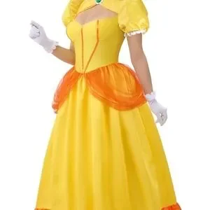 Package Includes: The women princess costume package includes 1 yellow dress, 1 pair of matching gloves, 1 cute headband, and 1 pair of earrings to complete the royal look, race down Rainbow Road in style with the Princess Costume.
