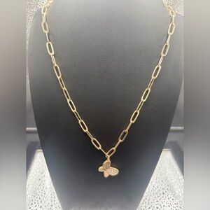 Elegant gold necklace featuring a charming bee pendant. Perfect for adding a touch of nature-inspired beauty to any outfit. Measurements 18 inches totally adjustable to 16 and 14.