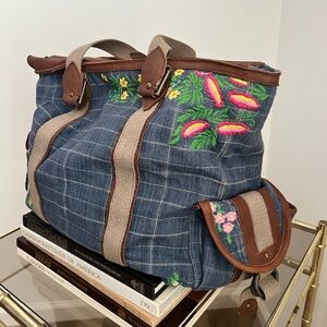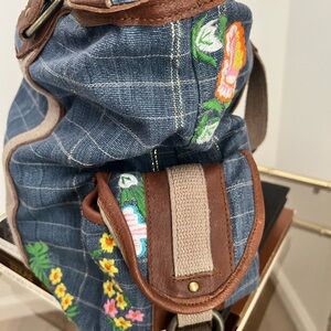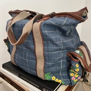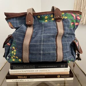 Free People Embroidered Blue Checkered Denim Women's Bag