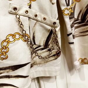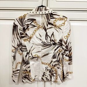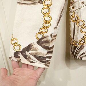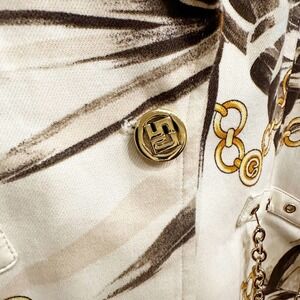 St John Sport Marie Gray Women’s Gold Chain Print Detail Blazer Grommets Palm Resort Nautical