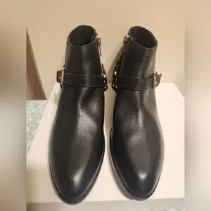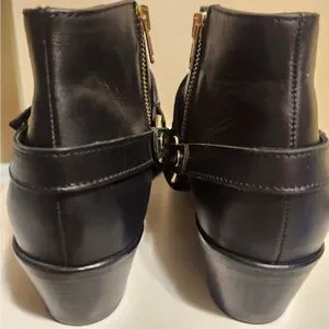 New J. Crew "Remi" Black Leather w/Harness Ankle Boots Size 7.5 (Retail $268)