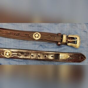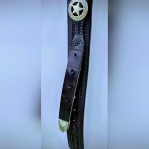 LEATHER MEN'S BELT WESTERN HANDMADE, with FILIGREE SILVER BUCKLE, STAR CONCHOS ⭐ Men's Sz 42-46