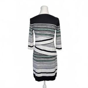 SEO Keywords: J. McLaughlin dress, women's sheath dress, striped dress, black white green dress, nylon spandex dress, office dress, casual dress, size small dress