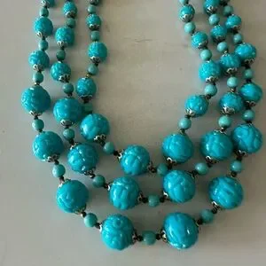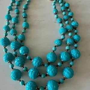 Vintage beaded triple strand necklace perfect for a pop of color to any outfit. Ideal for casual or formal occasions.gold metal clasp in excellent condition (1950”s)