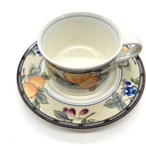 Mikasa Intaglio Garden Harvest CAC29 Cup & Saucer Set Pears Grapes Fruit