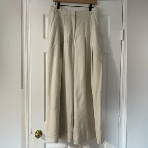 Anthropologie x Farm Rio Tan Linen Wide-Leg Pants – Size Medium (Lined)