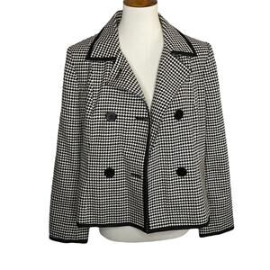 Vintage Talbots Houndstooth Plaid Blazer Black Wool Jacket 12P Preppy Academia