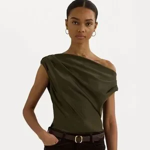 NWT Ralph Lauren Satin Charmeuse Off-the-Shoulder Blouse Botanic Green XSP