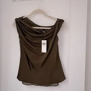 Beautiful satin olive green blouse from Ralph Lauren. XS petite. New with tags. Color is more true to the stock photo than my pictures